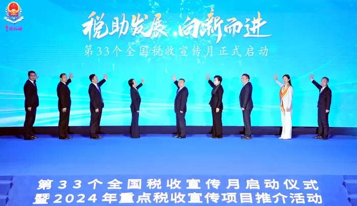 3月(yuè)29日(rì)上(shàng)午,國(→↓guó)家(jiā)稅務總局二樓多(duα↕ ↓ō)功能(néng)廳氣氛熱(rè)烈,現(xiàn)場(chǎng)不(bù♠★)時(shí)傳來(lái)陣陣掌聲。第33個(gèΩ→)全國(guó)稅收宣傳月(yuè)啓動儀式暨2024年(nián)αα重點稅收宣傳項目推介活動在這(zhè)裡(lǐ)舉行(xíng)。“稅眼看(™↔↕kàn)發展”“稅助‘新質生(shēng)産力’”“大★δ$↓(dà)市(shì)場(chǎng) 稅活力”“跟著(zhe)文(w∞™λén)物(wù)學稅法”……随著(zhe)14個(gèπ≈)重點稅收宣傳項目逐一(yī)精彩推出,以“稅助發展 向新而進”為ε↑€(wèi)主題的(de)第33個(gè)全國(guó)稅收宣傳月(yλφuè)正式啓動。